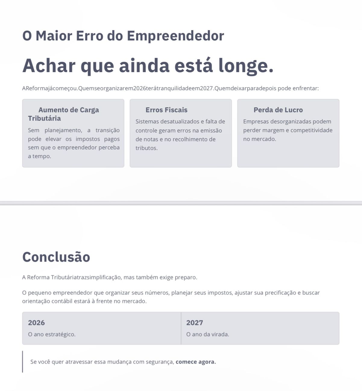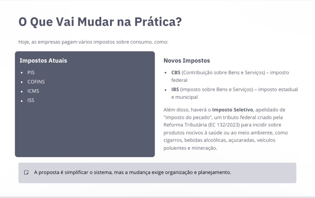 A ReformaTributária já é uma realidade no Brasil e vai transformar a forma como os impostos sobre consumo são cobrados. Neste artigo, vamos explicar deforma simples e direta o que isso significa para o pequeno empreendedor e o que você precisa fazer agora, em 2026, para não ter problemas em 2027.